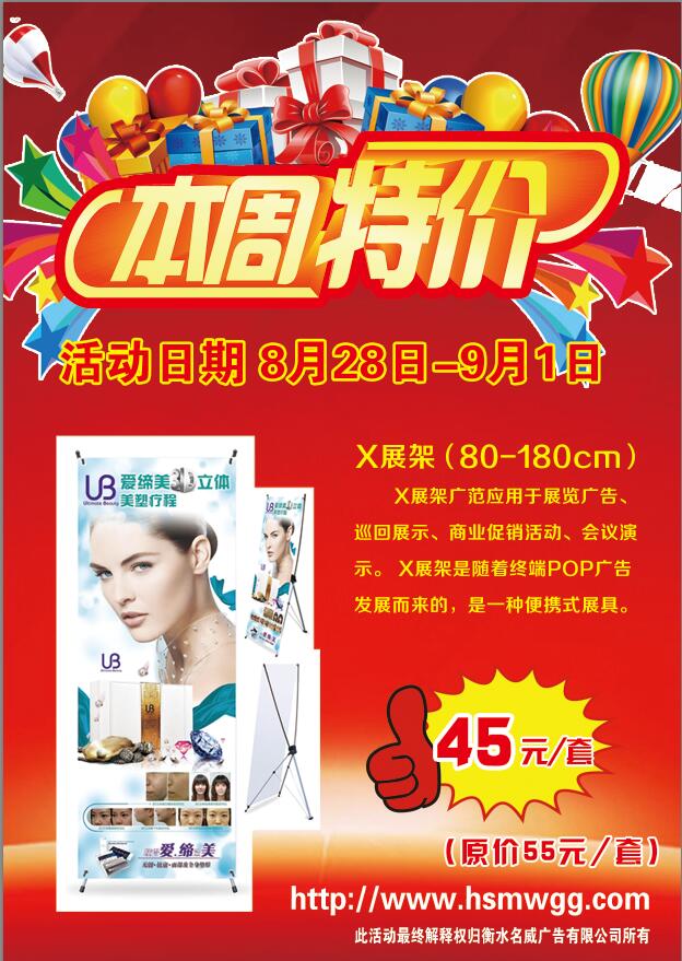 本周特價:80*180cmX展架45元/套